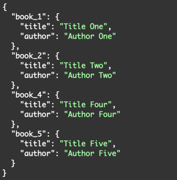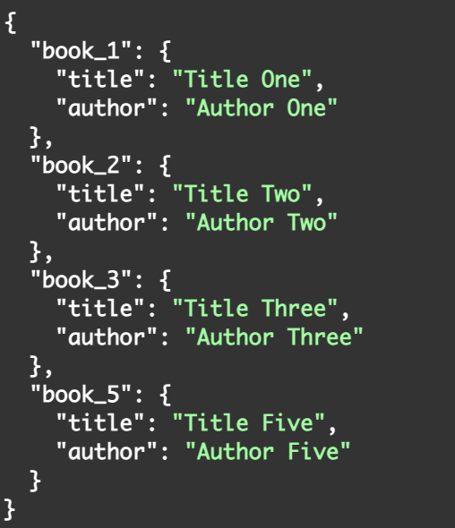 'book_2': {'title':'Title Two','author':'Author Two'},